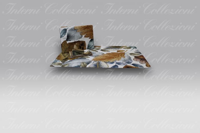 In un lato una stampa foglie variopinte, mentre il retro è a righe.