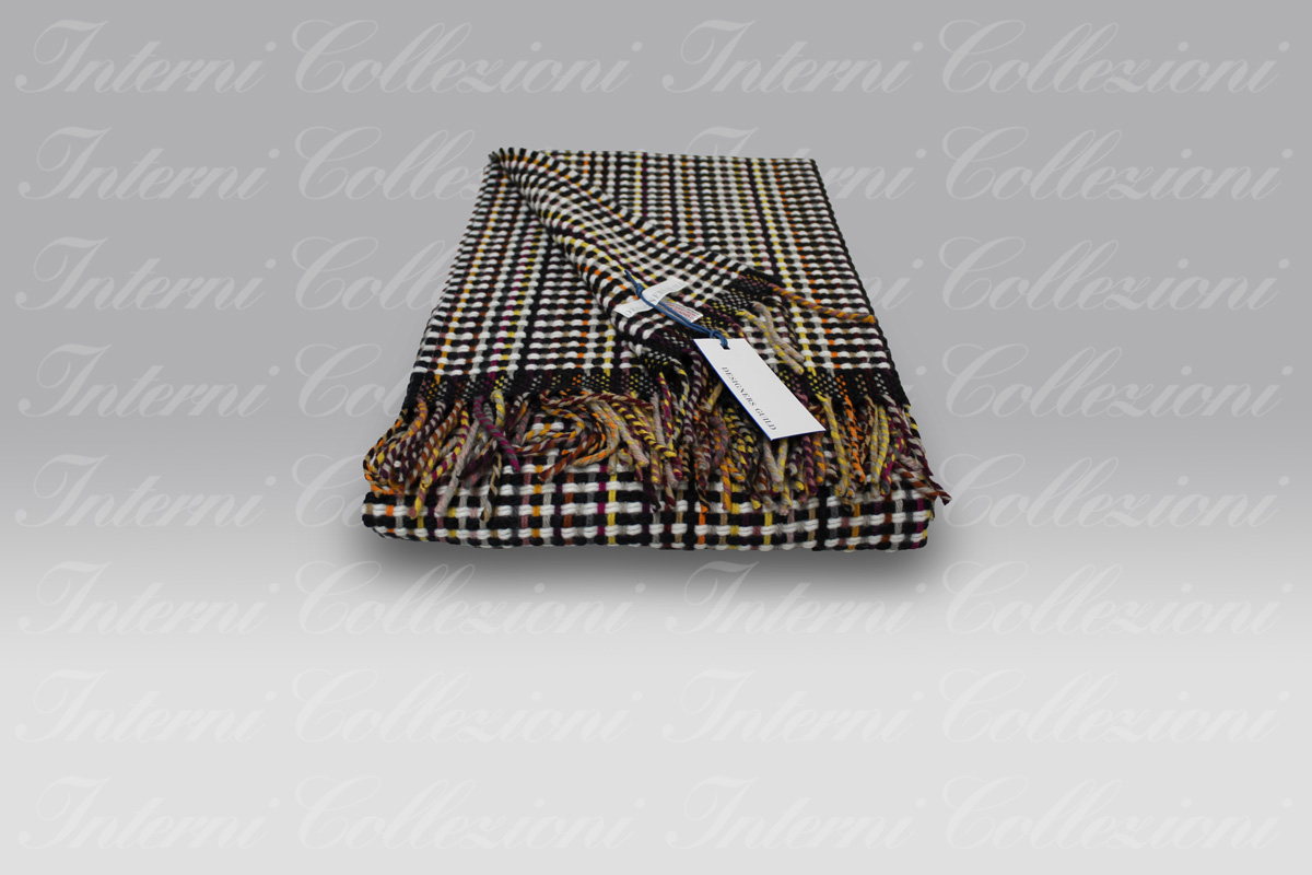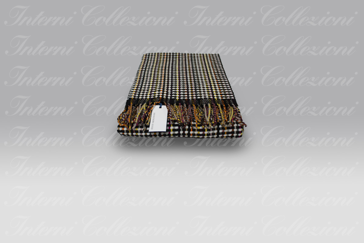 Questo plaid multicolore ha una maglia intrecciata ed è tessuta con un filato morbido e spesso.