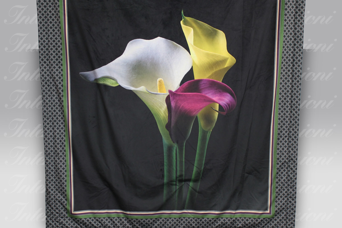 Una base color nero con stampa calle dai toni mozzafiato. Viene rifinito sui quattro lati da un bordo geometrico.