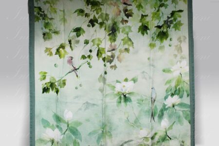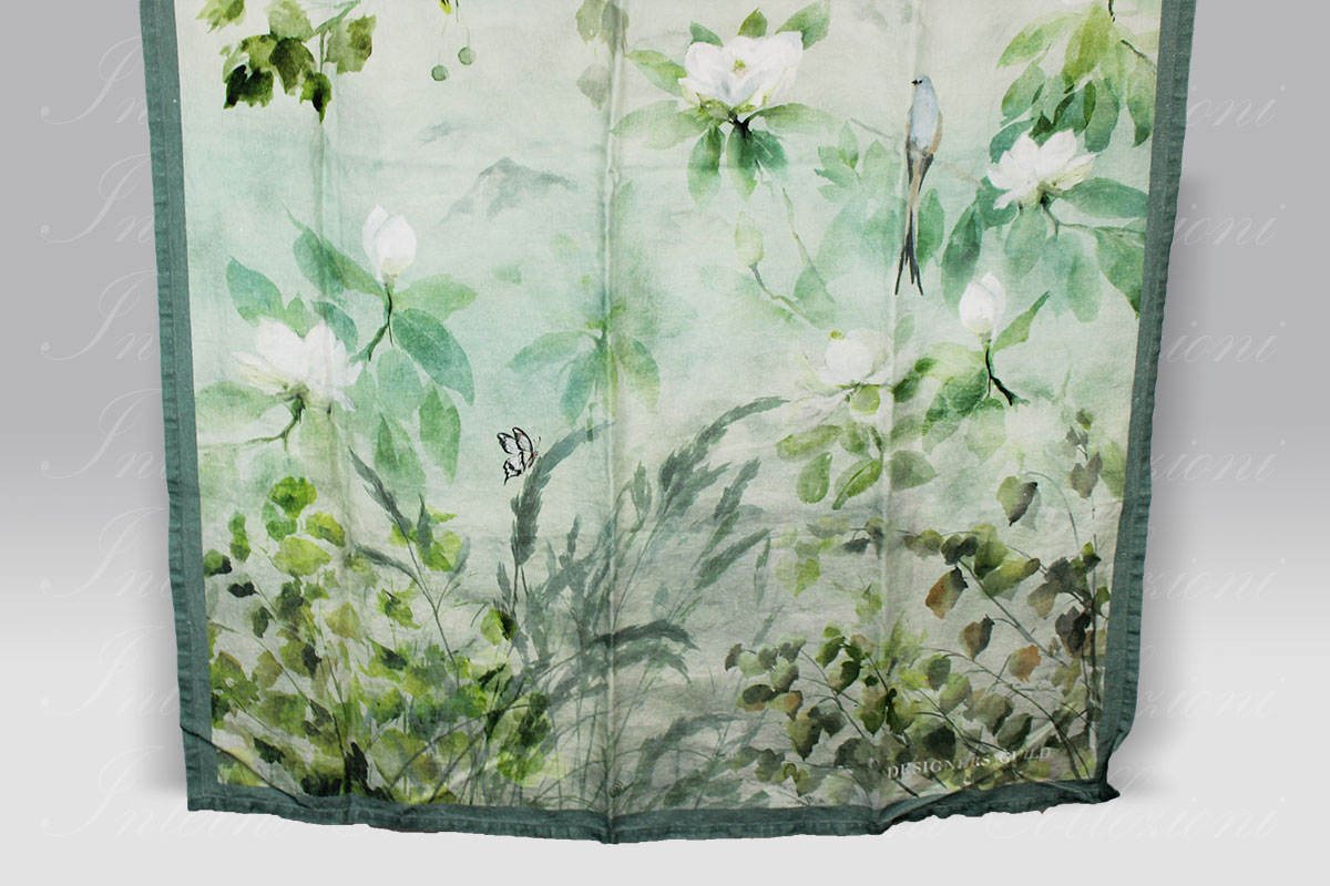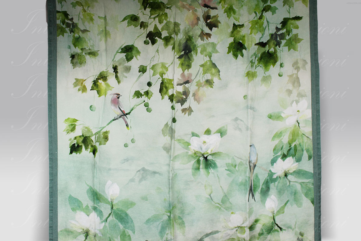 Un fantastico disegno foglie con strepitosi uccelli e farfalle.