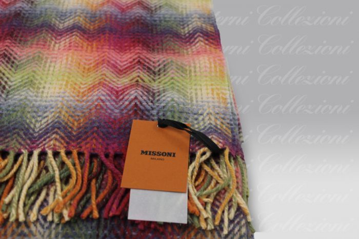 Un morbidissimo plaid in misto lana riciclata proposto da Missoni Home.