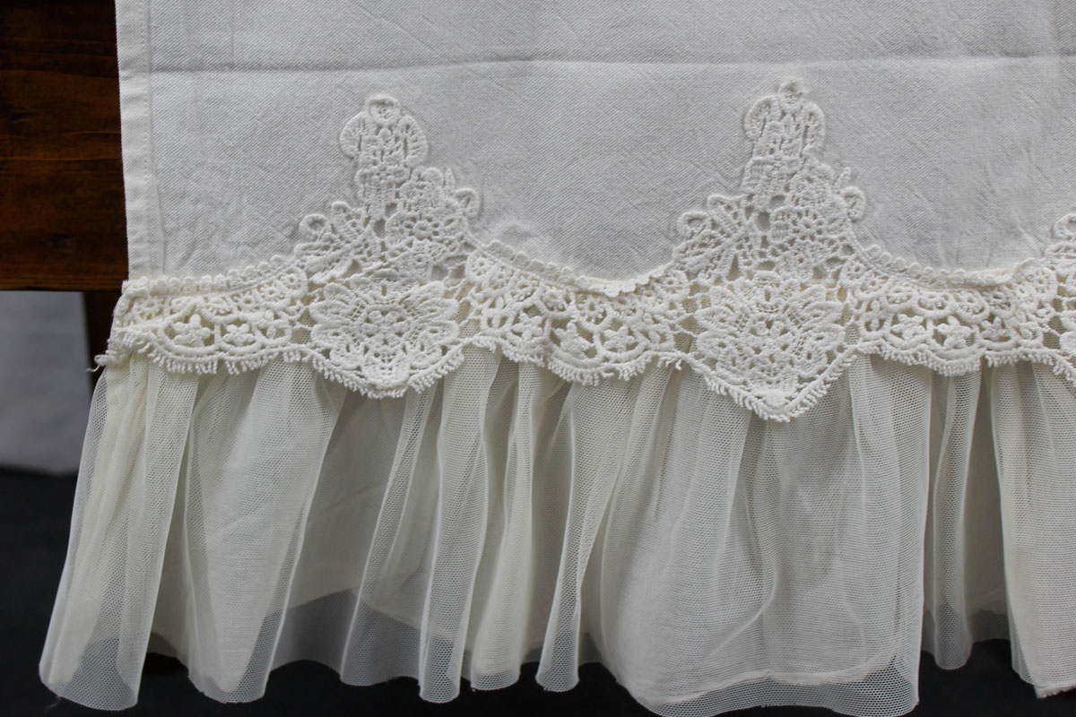 L’articolo Etoile è in puro cotone bianco, applicazione di una rouche in tulle unito, garza e pizzo.