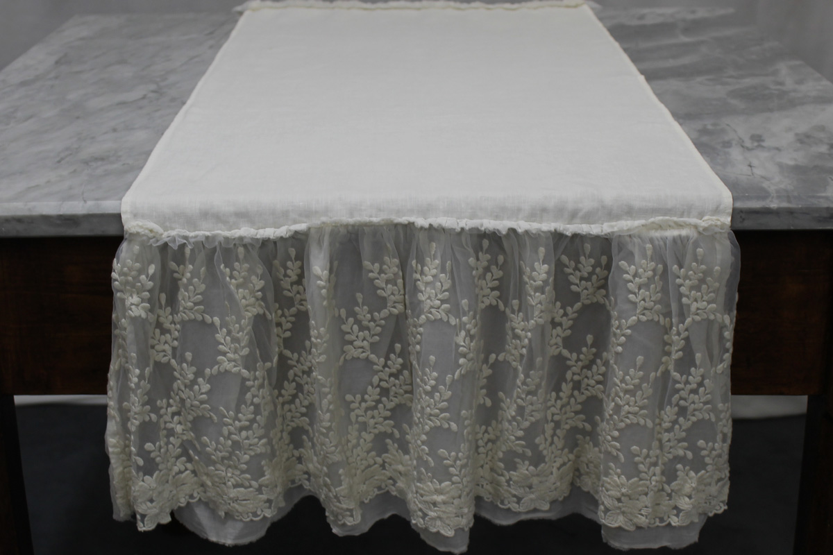 Applicazione di un prezioso pizzo ricamato su due lati.