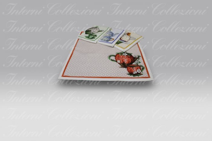 Confezione composta da: n.4 tovaglioli (cm46x46) + n.1 confezione in tessuto stampata
