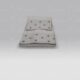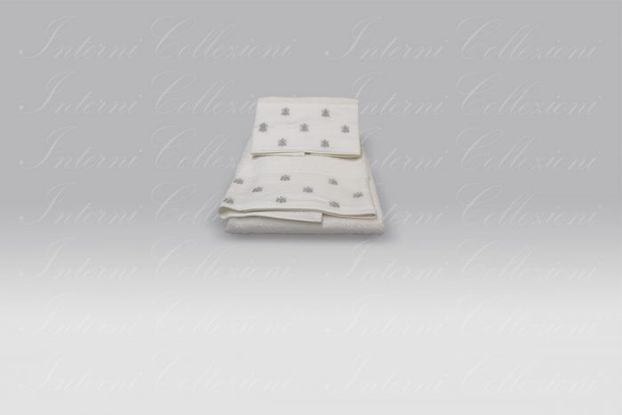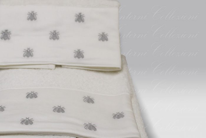 Applicazione di un bordo in satin di cotone con ricamo api grigio perla.