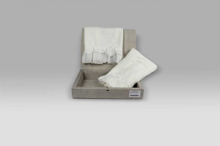 Bellissima coppia di asciugamani realizzata in spugna di puro cotone.