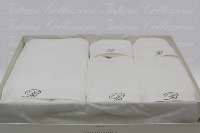 Set 5 pezzi composto da: n.2 viso (cm60x110) + n.2 ospite (cm40x60) + n.1 telo doccia (cm100x150)