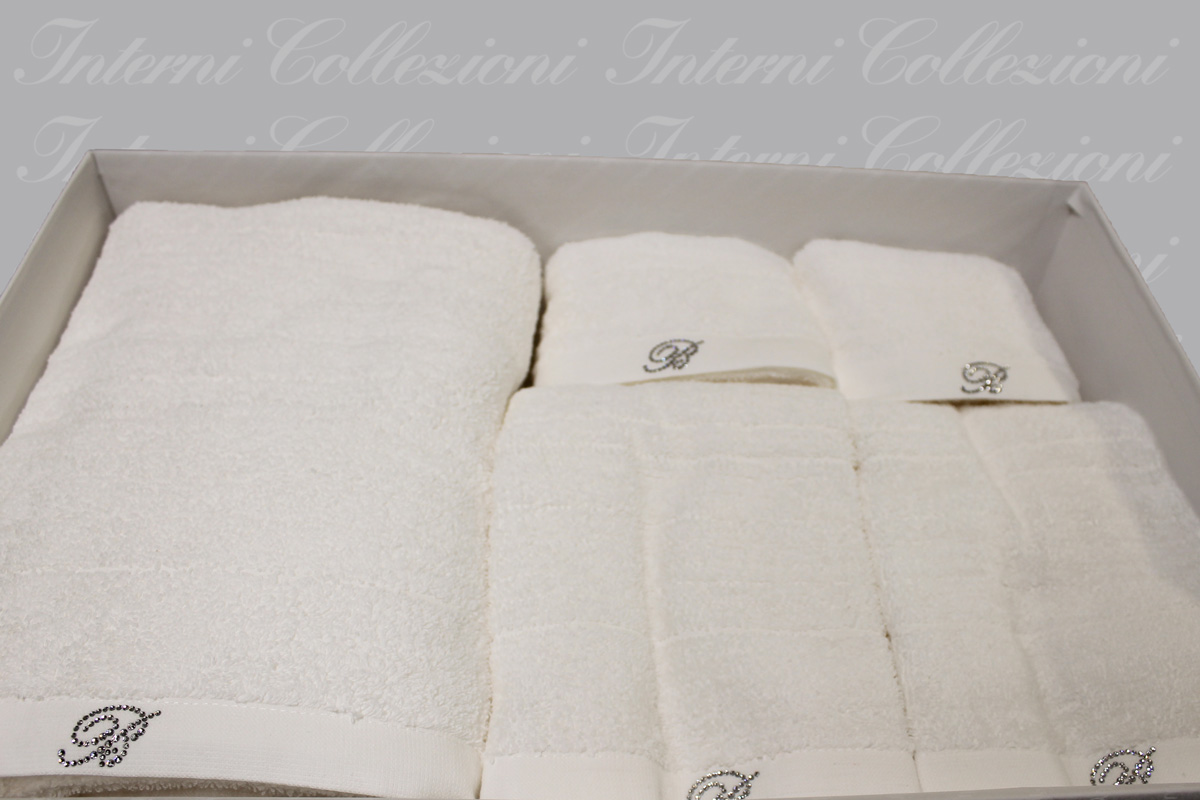 Set 5 pezzi composto da: n.2 viso (cm60x110) + n.2 ospite (cm40x60) + n.1 telo doccia (cm100x150)