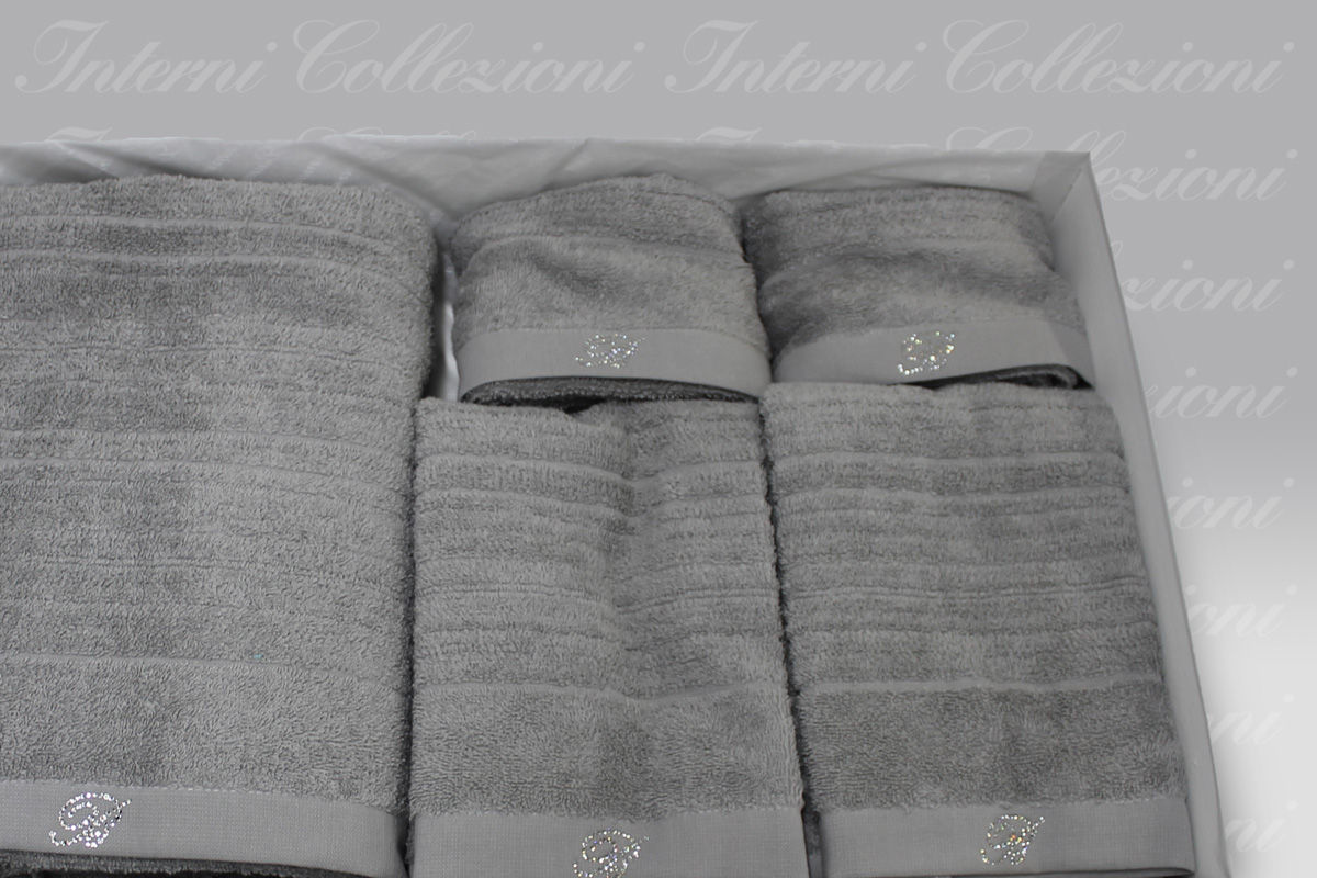 Set 5 pezzi composto da: n.2 viso (cm60x110) + n.2 ospite (cm40x60) + n.1 telo doccia (cm100x150)