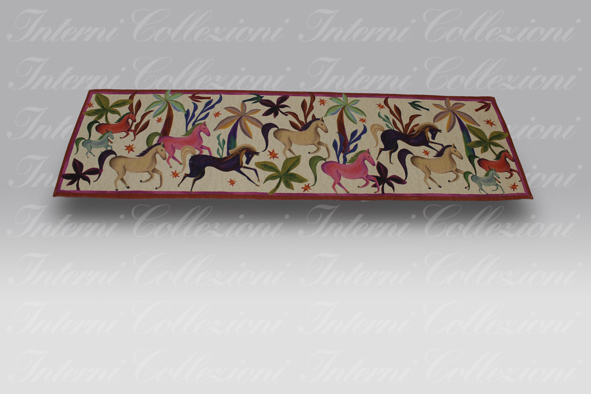 Una base naturale con stampa simpatici cavalli fiabeschi e stilizzati dai toni mozzafiato.