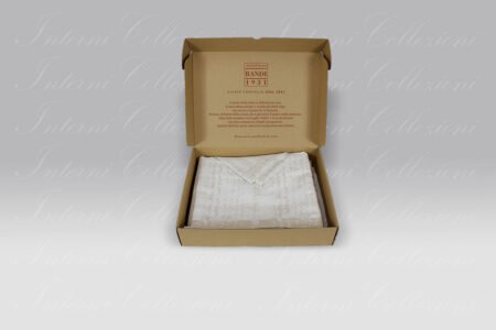 Viene rifinito con un prezioso bordo alto in positivo-negativo.