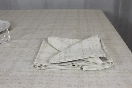 Fantastica tovaglia con tovaglioli in fiandra di misto cotone.