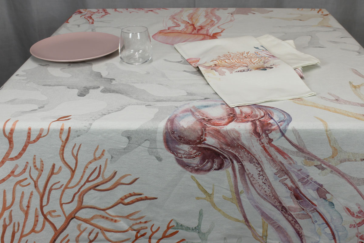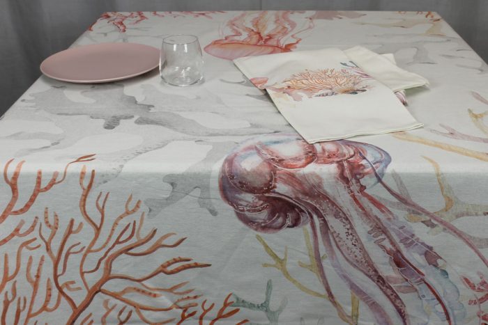Tovaglia con tovaglioli Radici Corallo Tessitura Randi