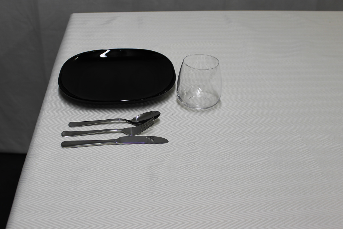 Una fantastica tovaglia realizzata con un tessuto operato in misto cotone.