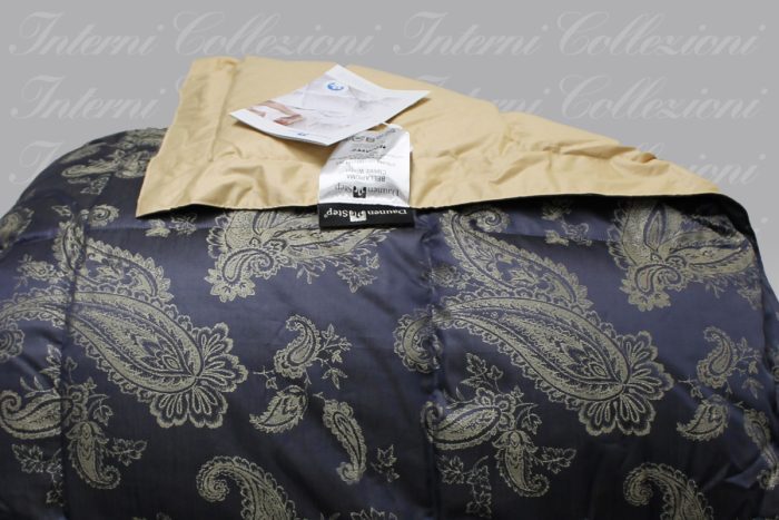 Le trapunte invernali BELLAPIUMA sono confezionati a tre teli: due in puro cotone a tenuta piuma e un tessuto decorativo sopra.