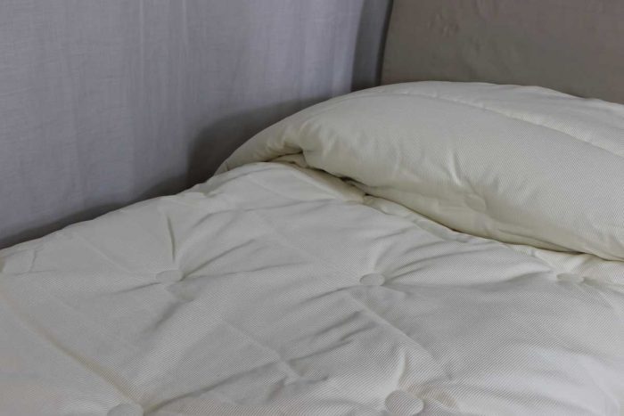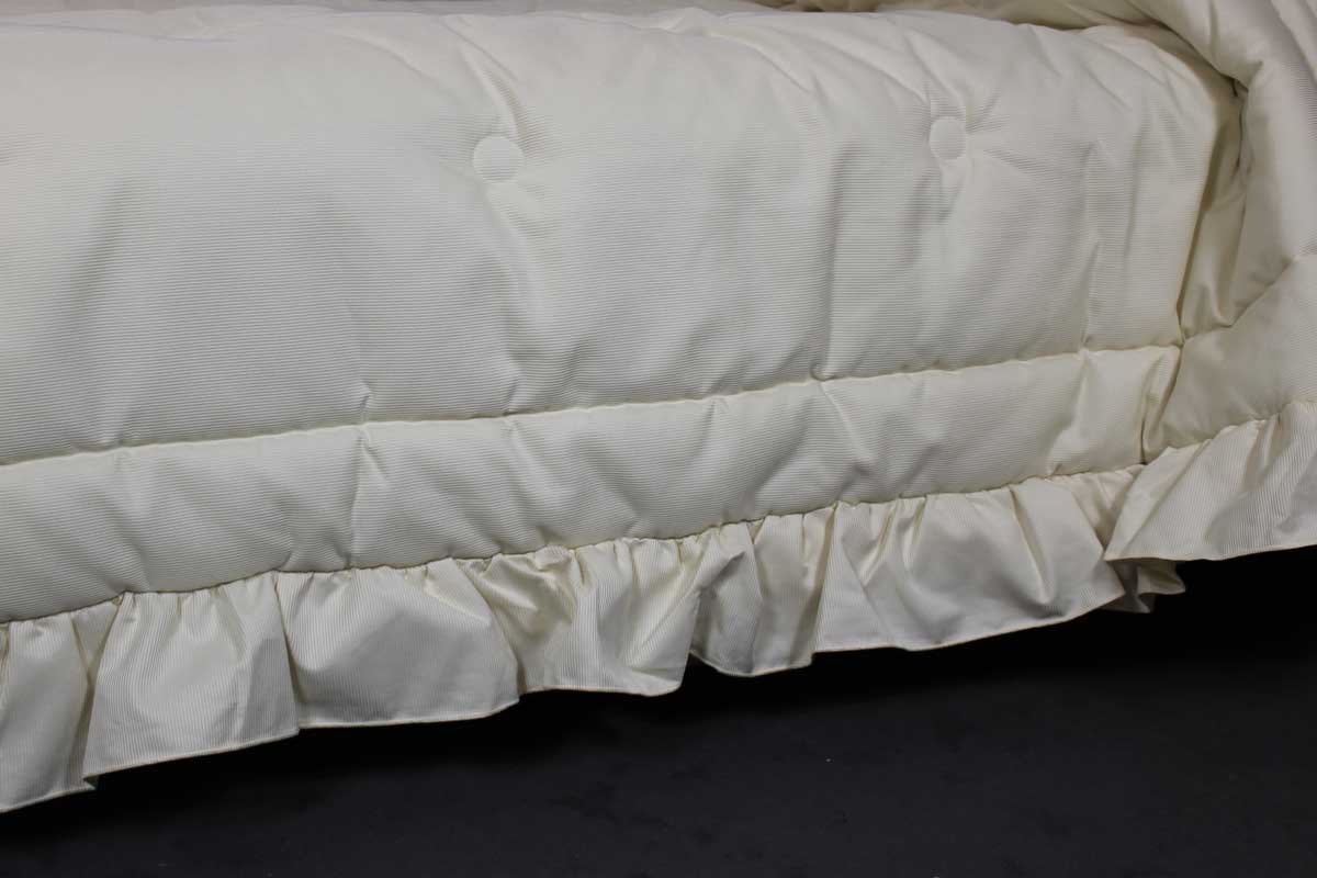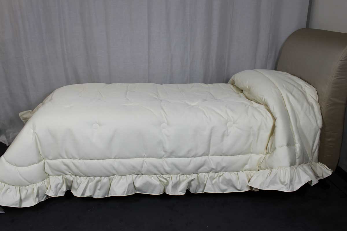 Trapunta realizzata con tessuto millerighe con galletta applicata.