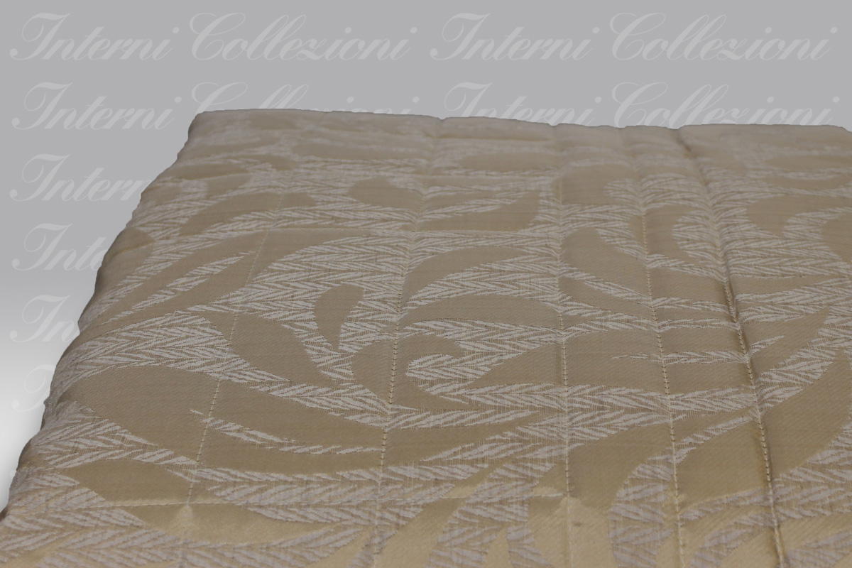 Un tessuto jacquard nei toni caldi del sabbia e oro.