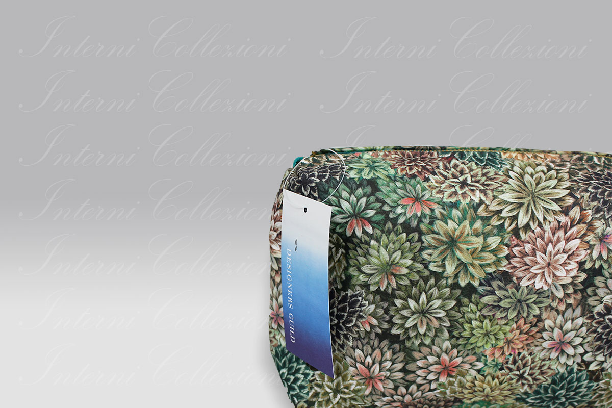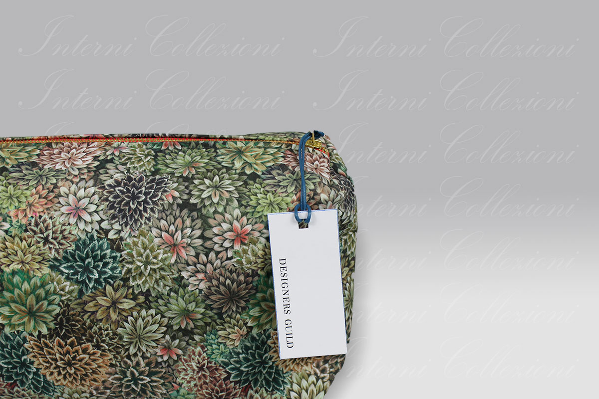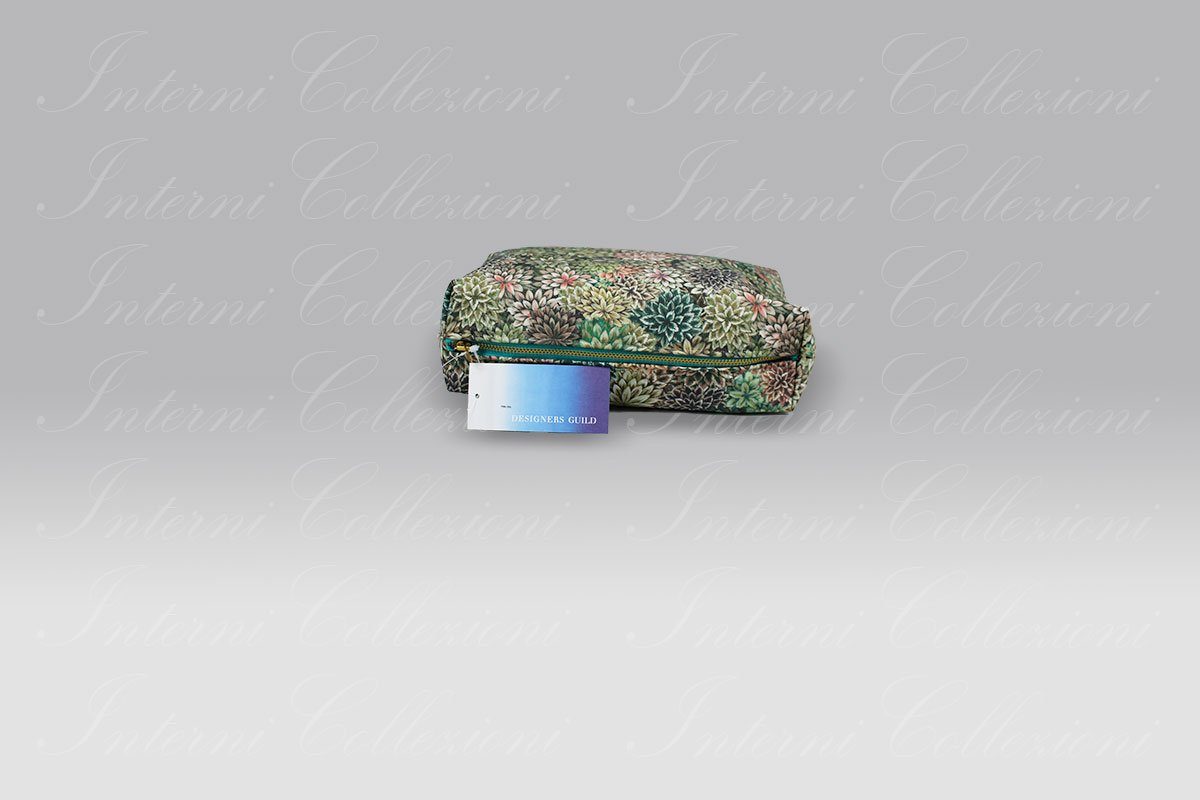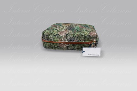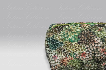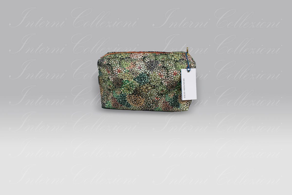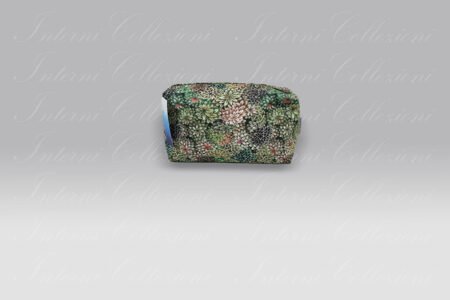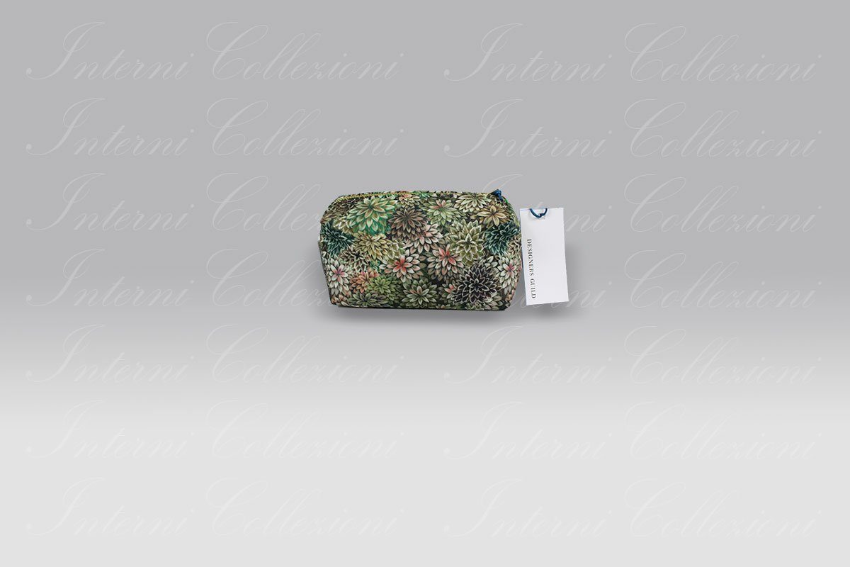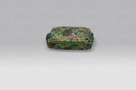 Questo beauty case è caratterizzato da un motivo a foglie sovrapposte nel colore del verde.
